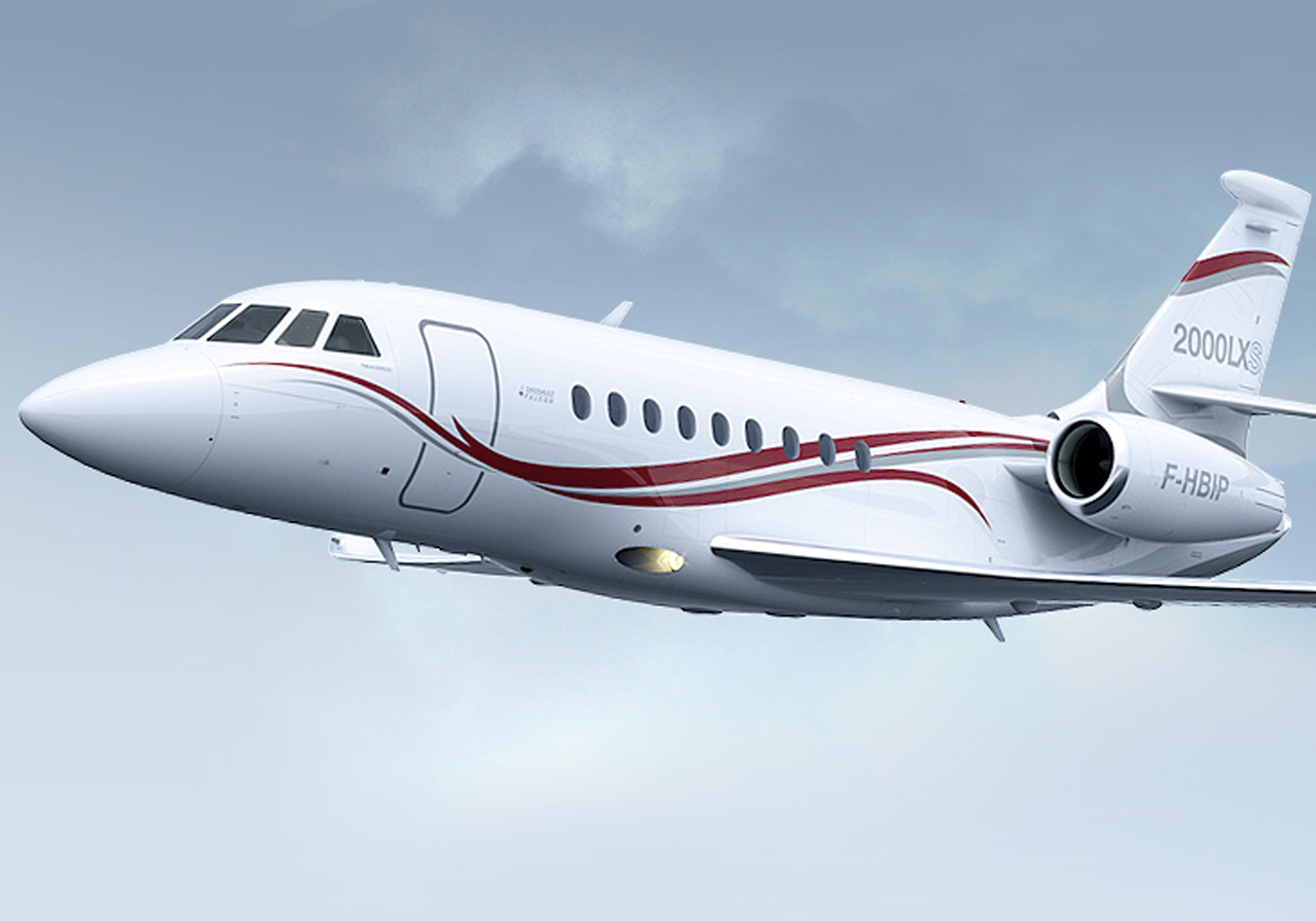 FALCON 2000LSX private jet charter model of unmatched performance.