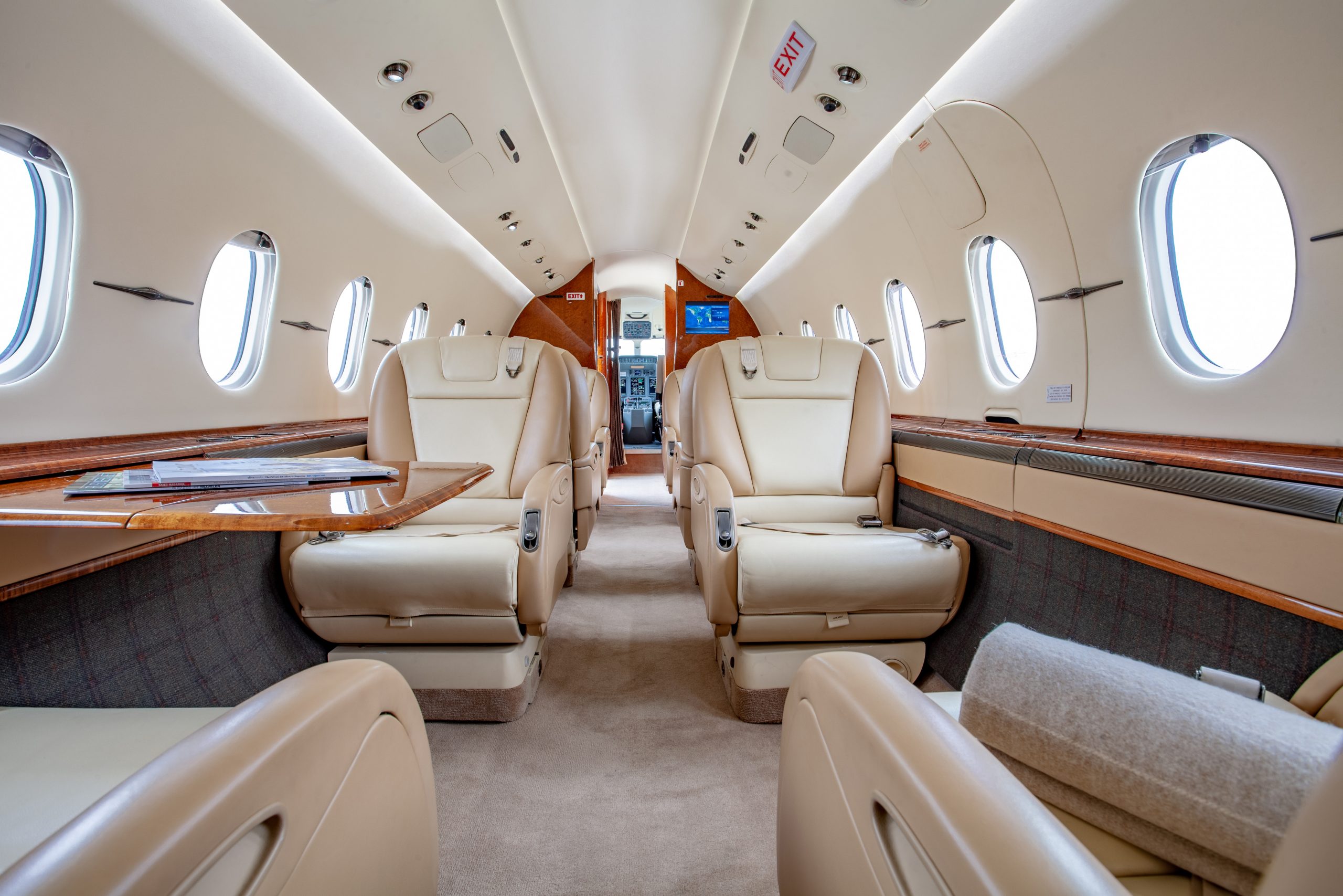 The Hawker 4000 can be outfitted to seat ten people. The aircraft’s carbon composite construction gives it more interior space than many jets in its class. Interior standing room is an average of six feet. This composite construction also makes the aircraft lighter than a standard aluminum structure, allowing a maximum range of 3,445 nautical miles, and a service ceiling of 45,000 feet (14,000 m). The flight deck features a Honeywell Primus Epic avionics suite with EICAS, FADEC and autothrottle.